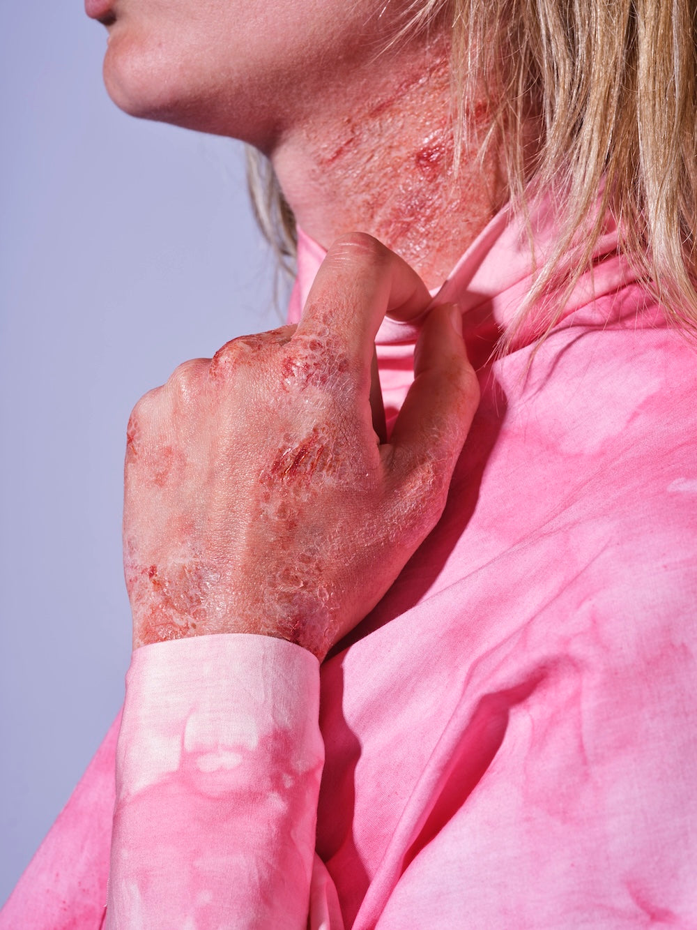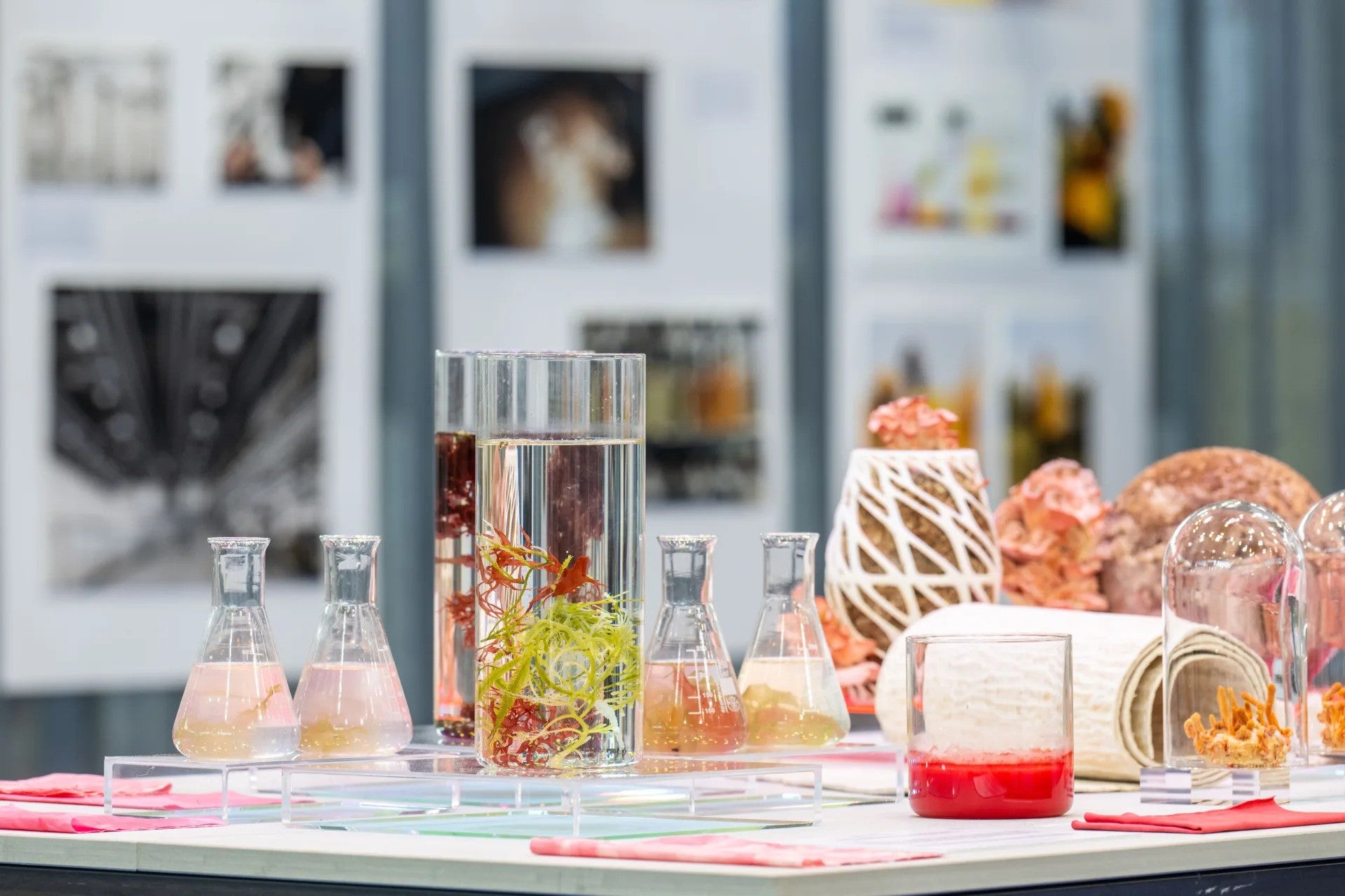 The core of Beyond Flares lies in its groundbreaking approach: textiles that transcend their traditional role to offer enhanced benefits to the wearer. These innovative fabrics are infused with pigments extracted from microalgae, which are rich in antioxidant and anti-inflammatory properties and synthesised bacteria extracts. The result is a textile designed for a close relationship with the skin, serving a dual purpose: to alleviate inflammatory symptoms such as itching and to protect the skin from external bacteria.