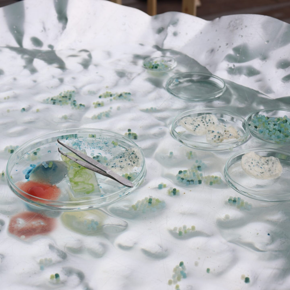 At the event, participants were invited to cool their body temperatures with hydrogel patches containing live algae, to reconnect with rainwater through all their senses, and to internalise water’s precarity in our world and its current systems.