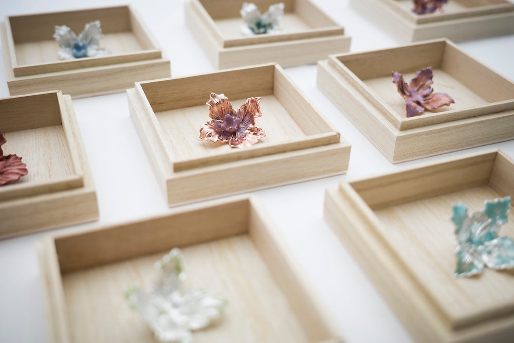 The jewellery takes the form of modular flowers, delicate yet resilient structures that echo the dried herbs we steep in winter and the fresh blooms that emerge in spring. Through careful observation, each material revealed its own behaviour and potential, forming a dialogue between maker and matter that honours the intelligence of living systems.