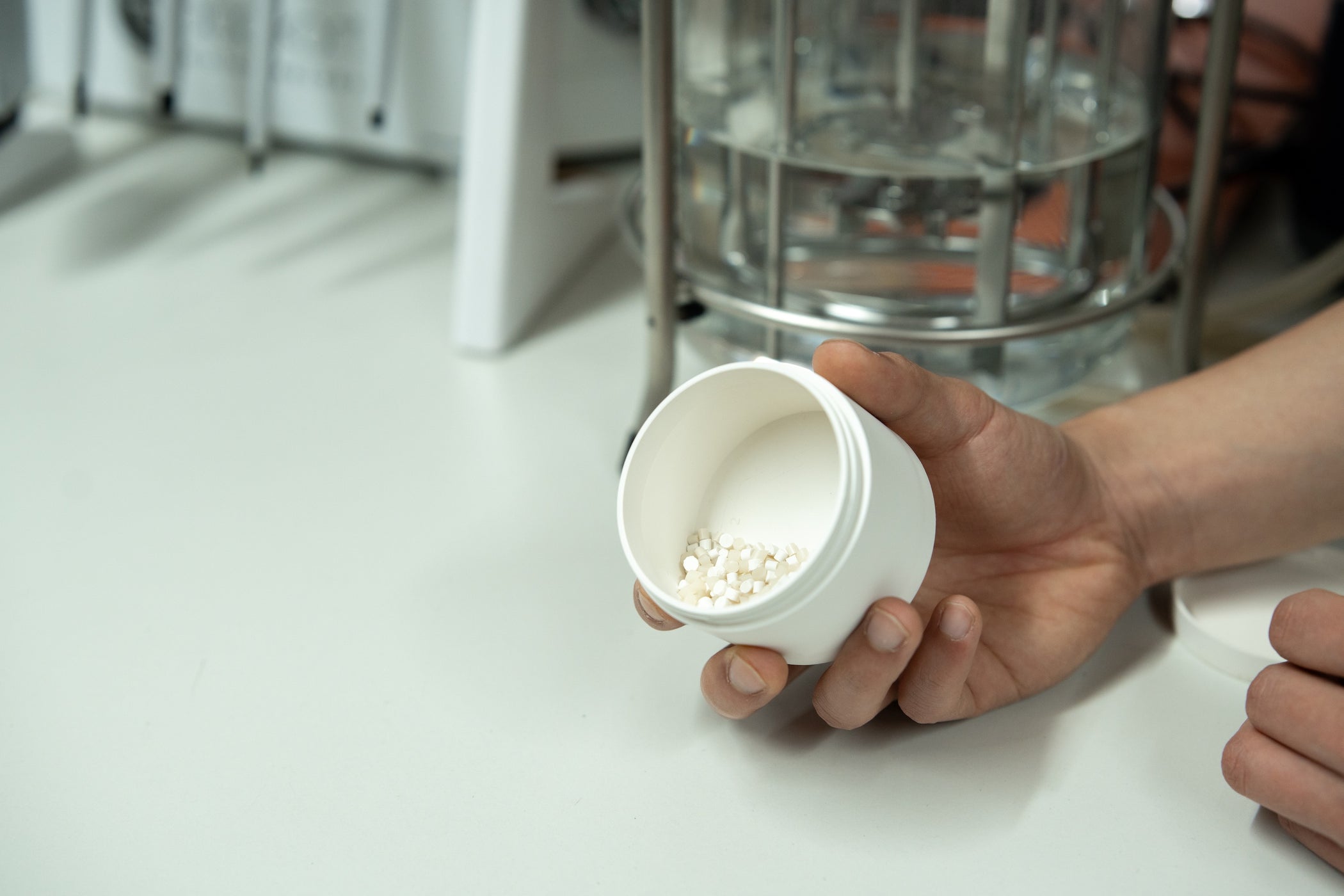The Shellworks team explained their bacterial fermentation process, which is similar to cheese-making. In this process, bacteria transforms organic inputs into pellets of their innovative material, Vivomer. The result is a substance that performs remarkably like conventional plastic while maintaining complete compostability.