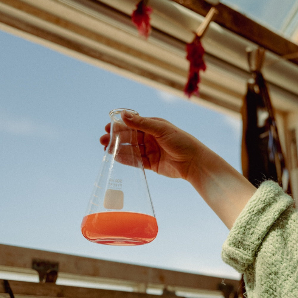 The project focuses on kelp and dulse, both abundant in Cornwall's coastal waters and recognised for their bioactive properties in our skincare formulations. Kelp is processed into fine fibres that can be spun into yarn, while dulse provides natural pink pigments for dyeing; the same species we value for their skin-beneficial compounds. These seaweeds offer significant environmental advantages: they grow rapidly without requiring freshwater or agricultural land, actively sequester carbon, and support marine biodiversity through their underwater forest ecosystems.
