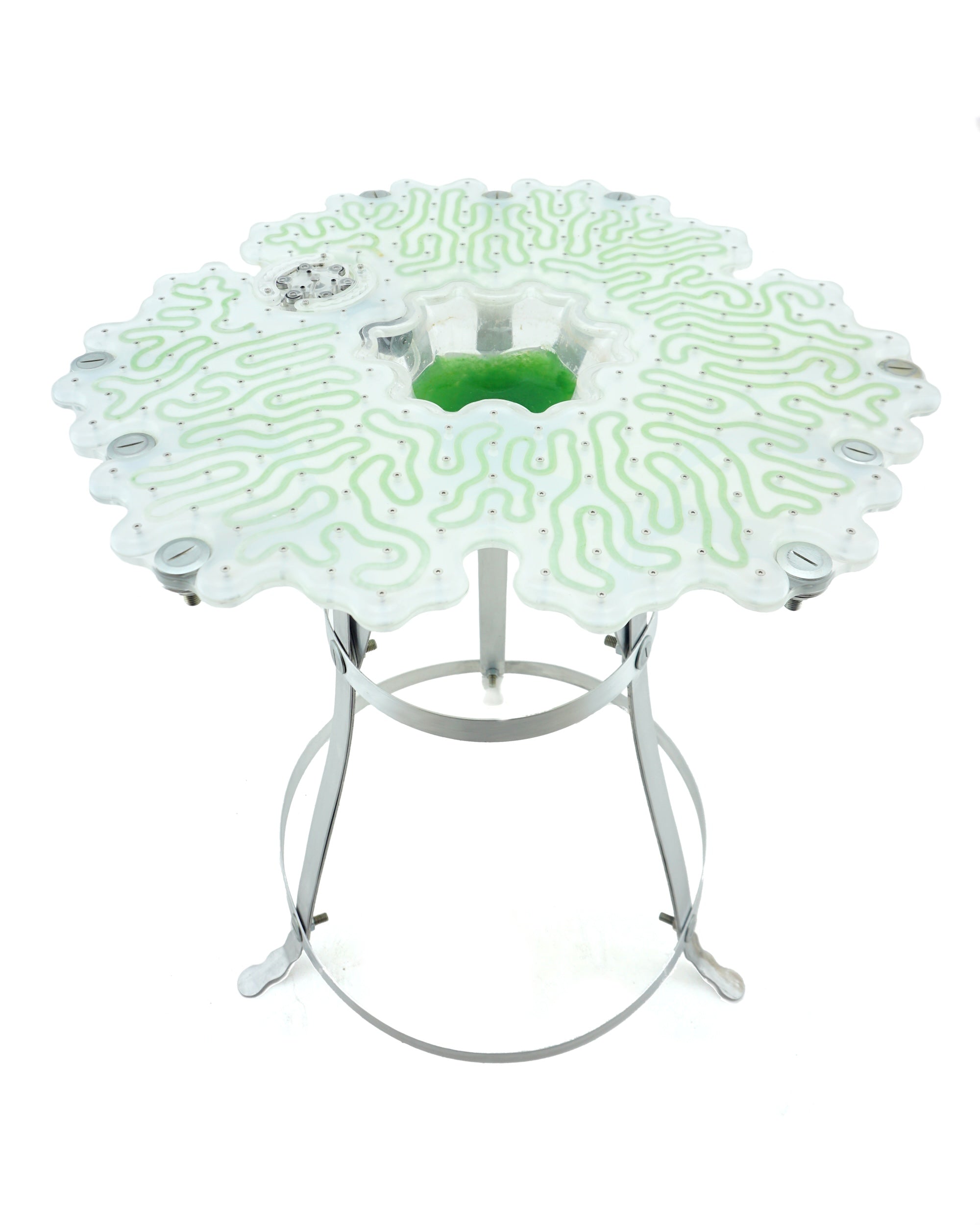 Bioactive Table This innovative table functions as an artificial coral, a living architectural platform that nurtures and supports the growth of photosynthetic microalgae, blurring the boundaries between design, biology, and ecological interaction.