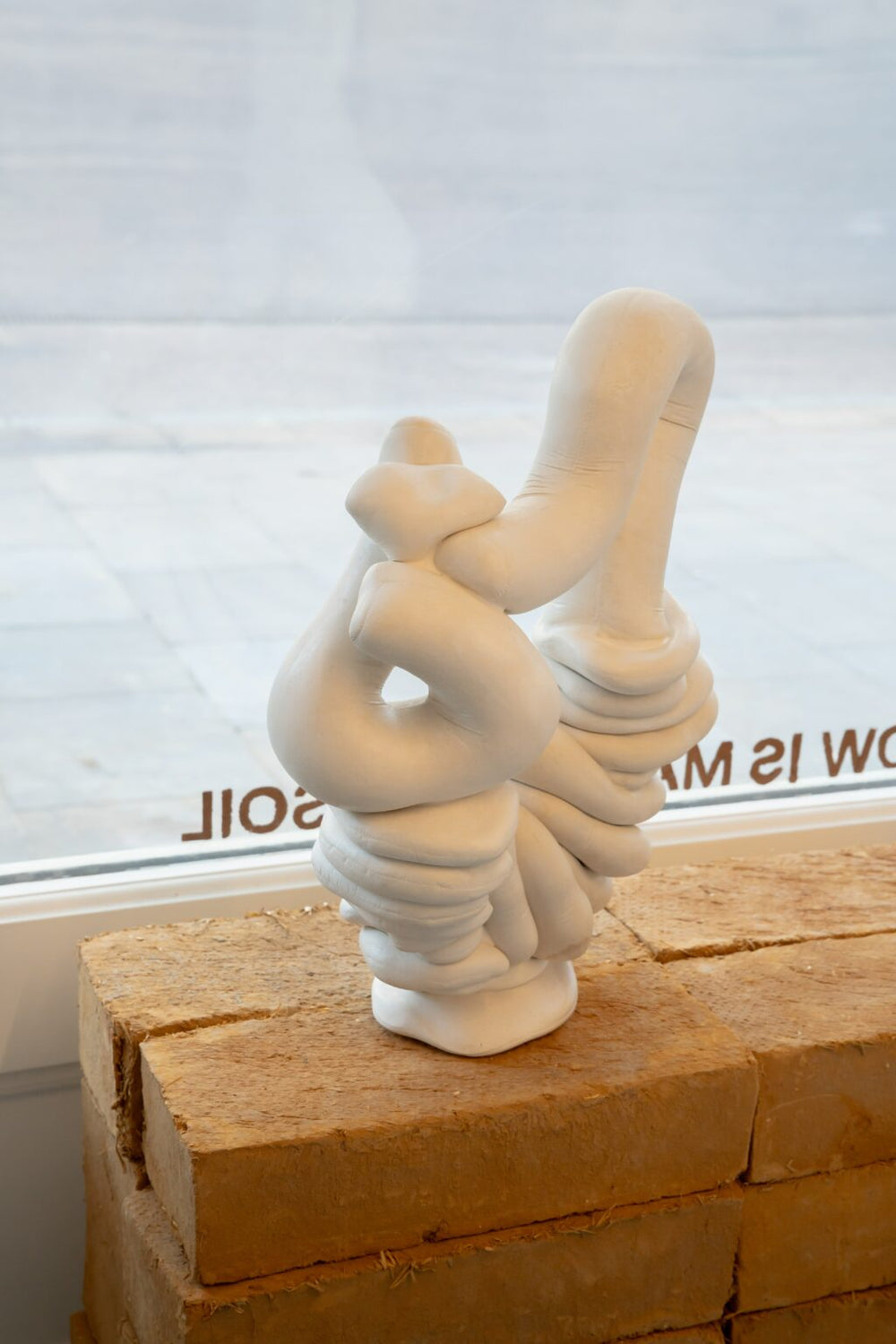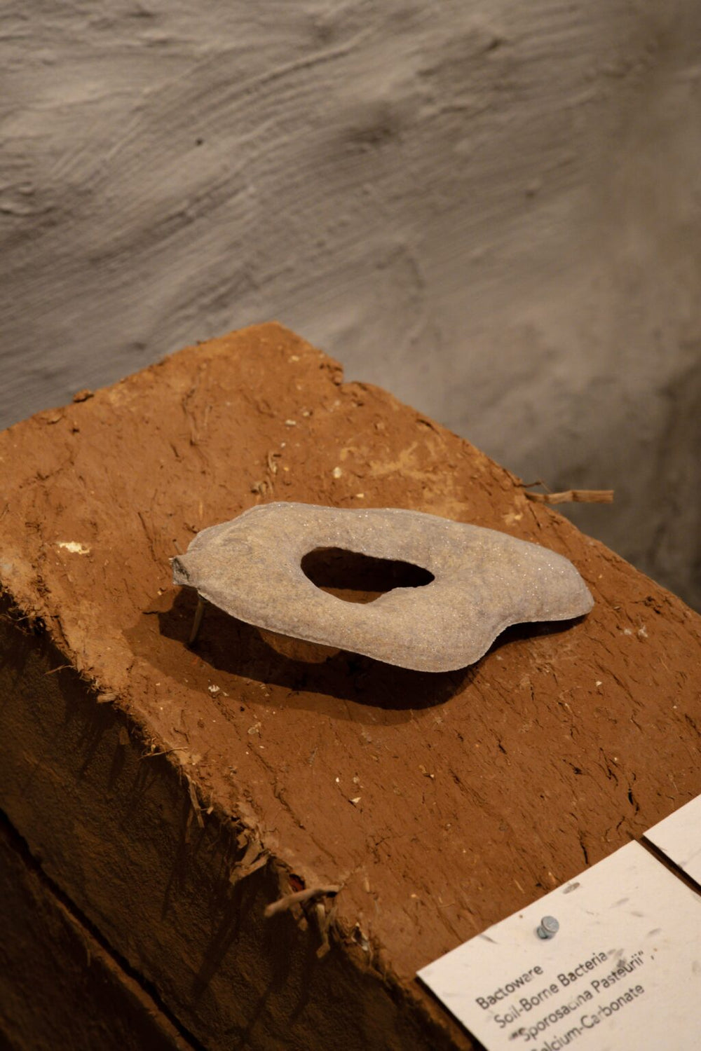 Crystal Wang, a Taiwanese biodesigner who creates fossil-like sculptures using soil-borne bacteria, crushed seashells, and eggshells, which improve soil health and prevent degradation. Crystal’s sustainable approach to ceramics preserves the craft while benefiting both people and the planet. Her process mimics traditional ceramics without the use of extreme heat, carbon, and energy; the naturally occurring calcium carbonate within the shells binds and solidifies these earthly matters together, creating a collection of objects that Crystal titles Bactoware.