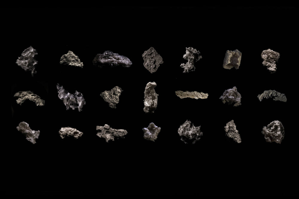 This thinking led her to work with Sporosarcina Pasteurii bacteria. These tiny organisms gradually create calcium carbonate—the same mineral found in shells—transforming soft, gel-like structures into solid, crystallised forms. What makes this remarkable is that the shapes aren't created by human tools, but by the natural behaviour of the bacteria themselves.