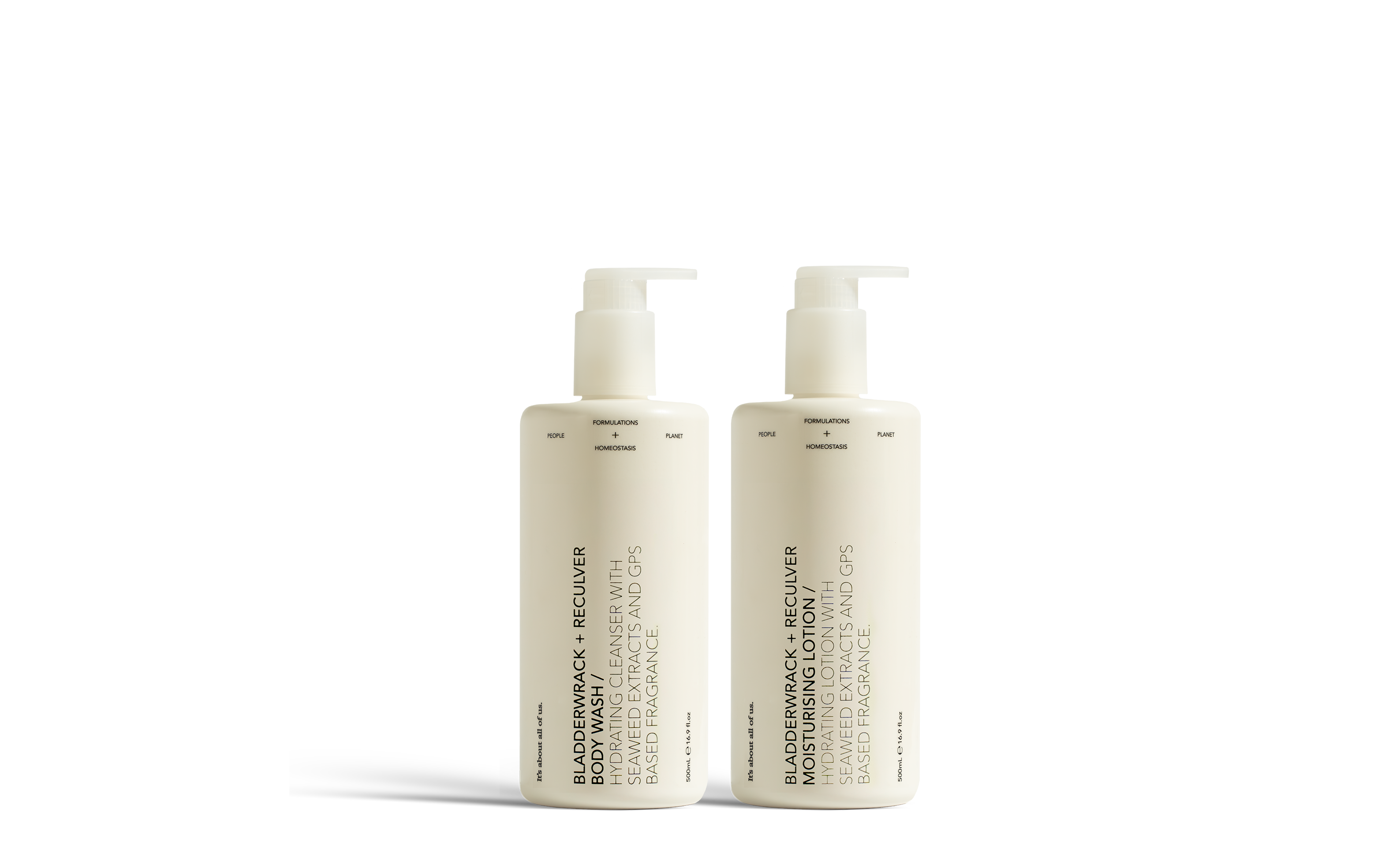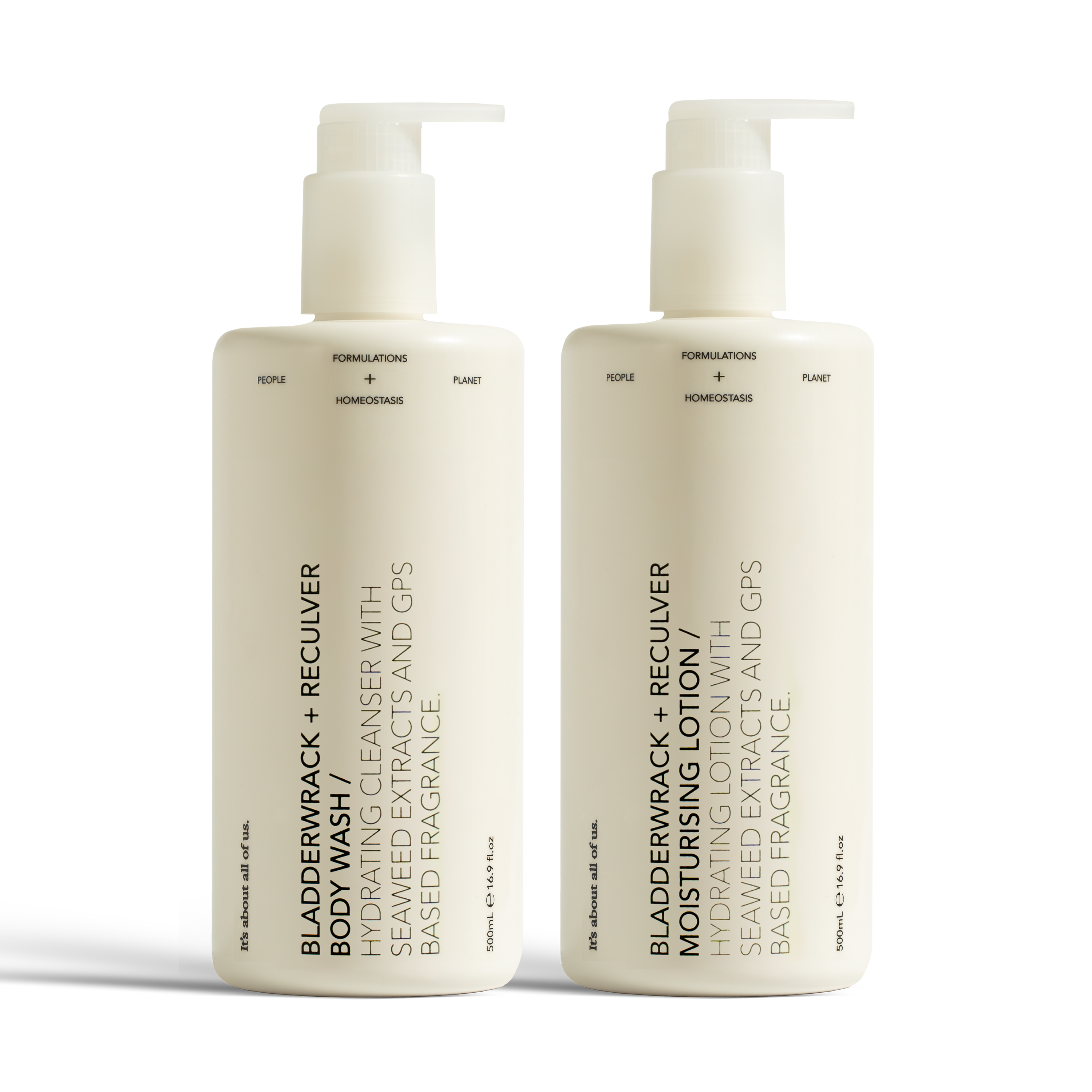 A bundle containing our new Bladderwrack + Reculver Body Wash and Moisturising Lotion.