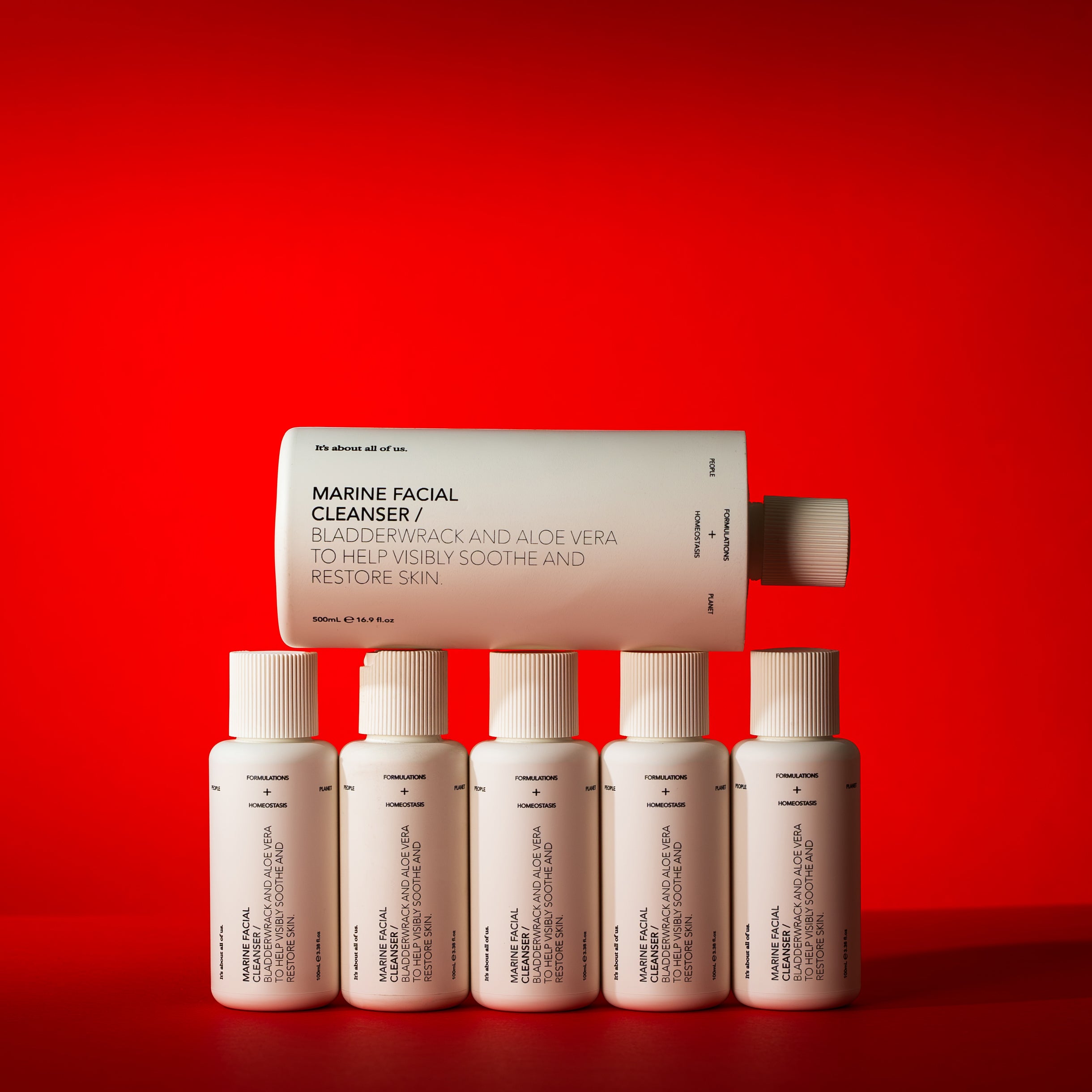 A limited-edition, bumper-sized bottle of our best-selling Marine Facial Cleanser. A moisturising facial cleanser containing bladderwrack and aloe vera to help visibly soothe and restore skin. 5x the product for the same price as our 100mL size. 500mL