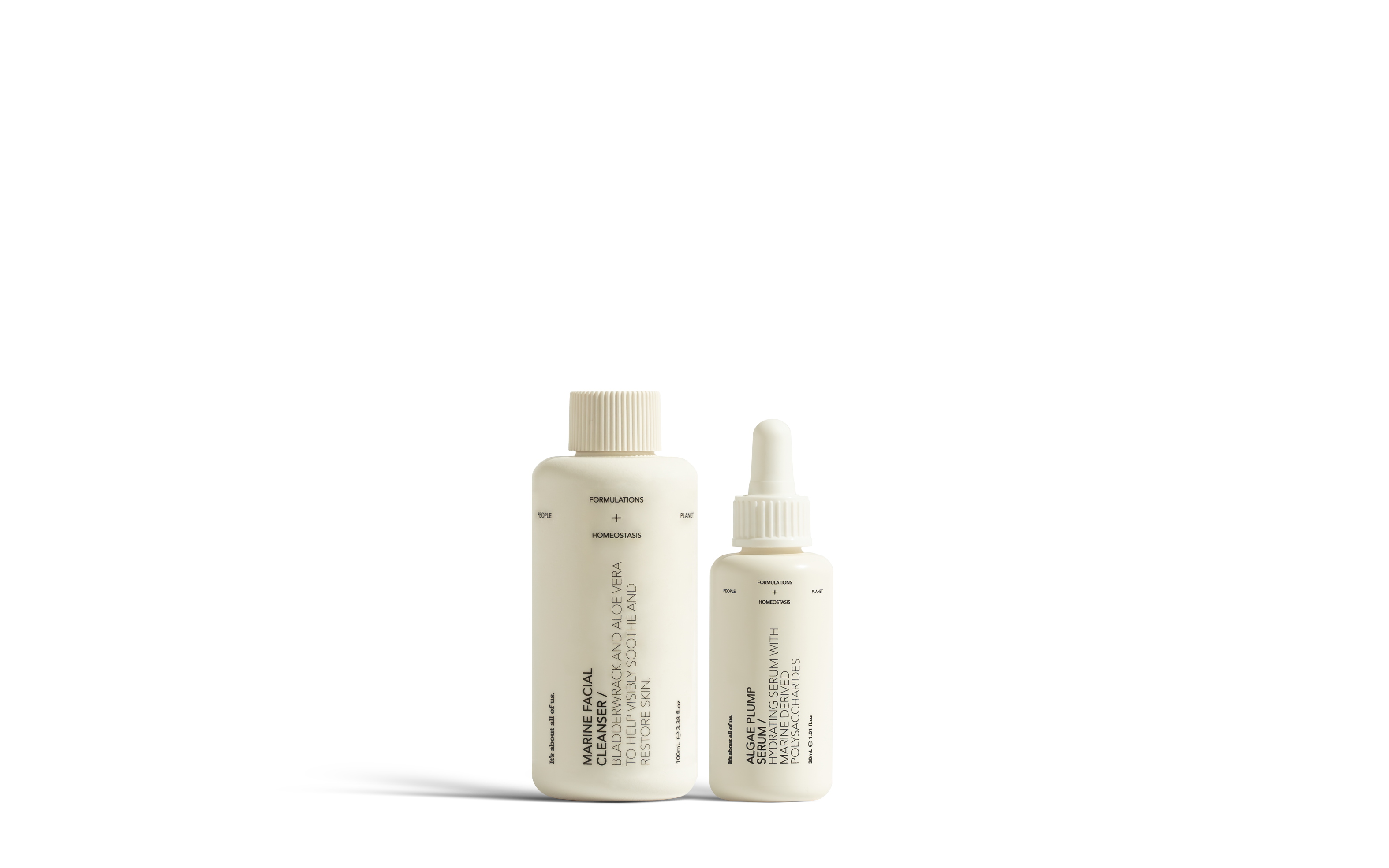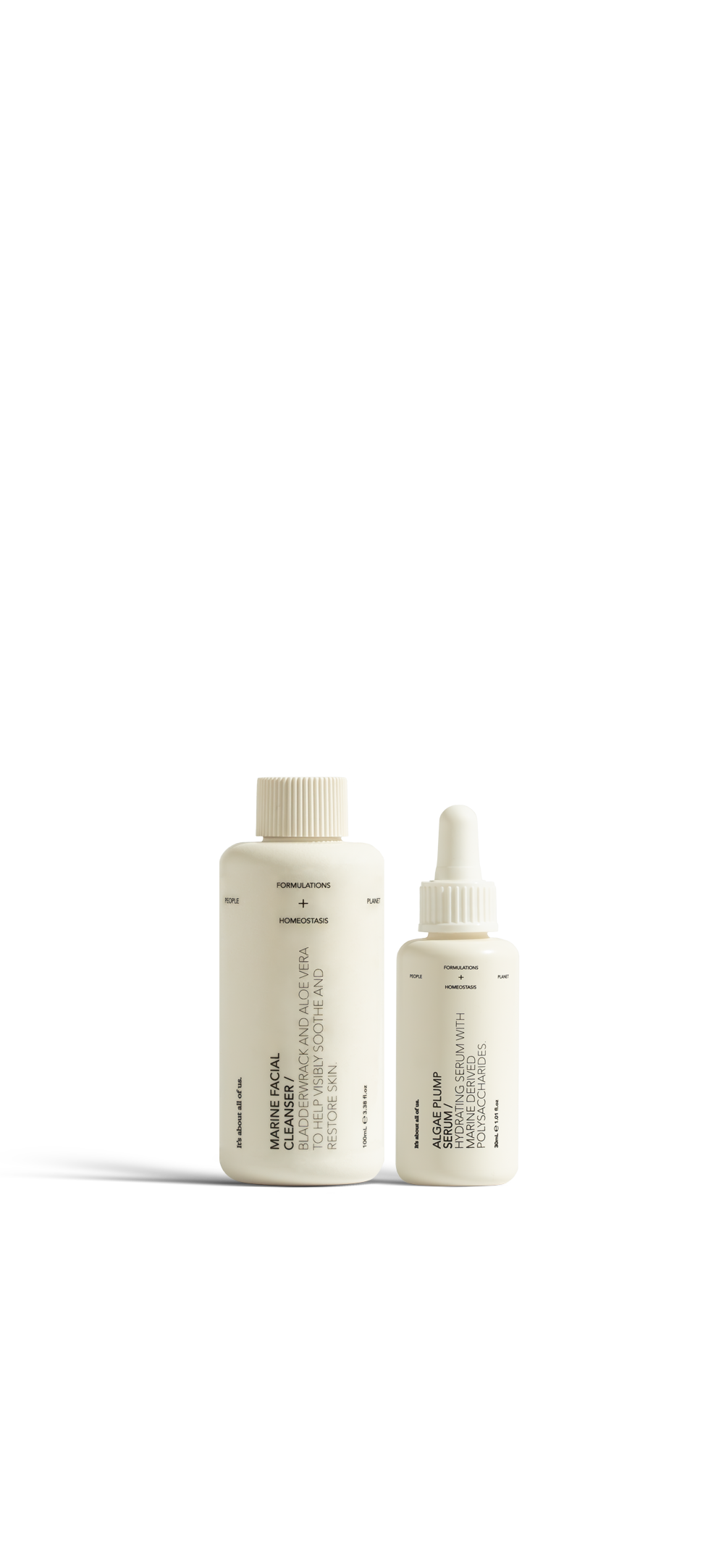 Bundle includes our Marine Facial Cleanser and Algae Plump Serum, two products that can be used together each day and night.