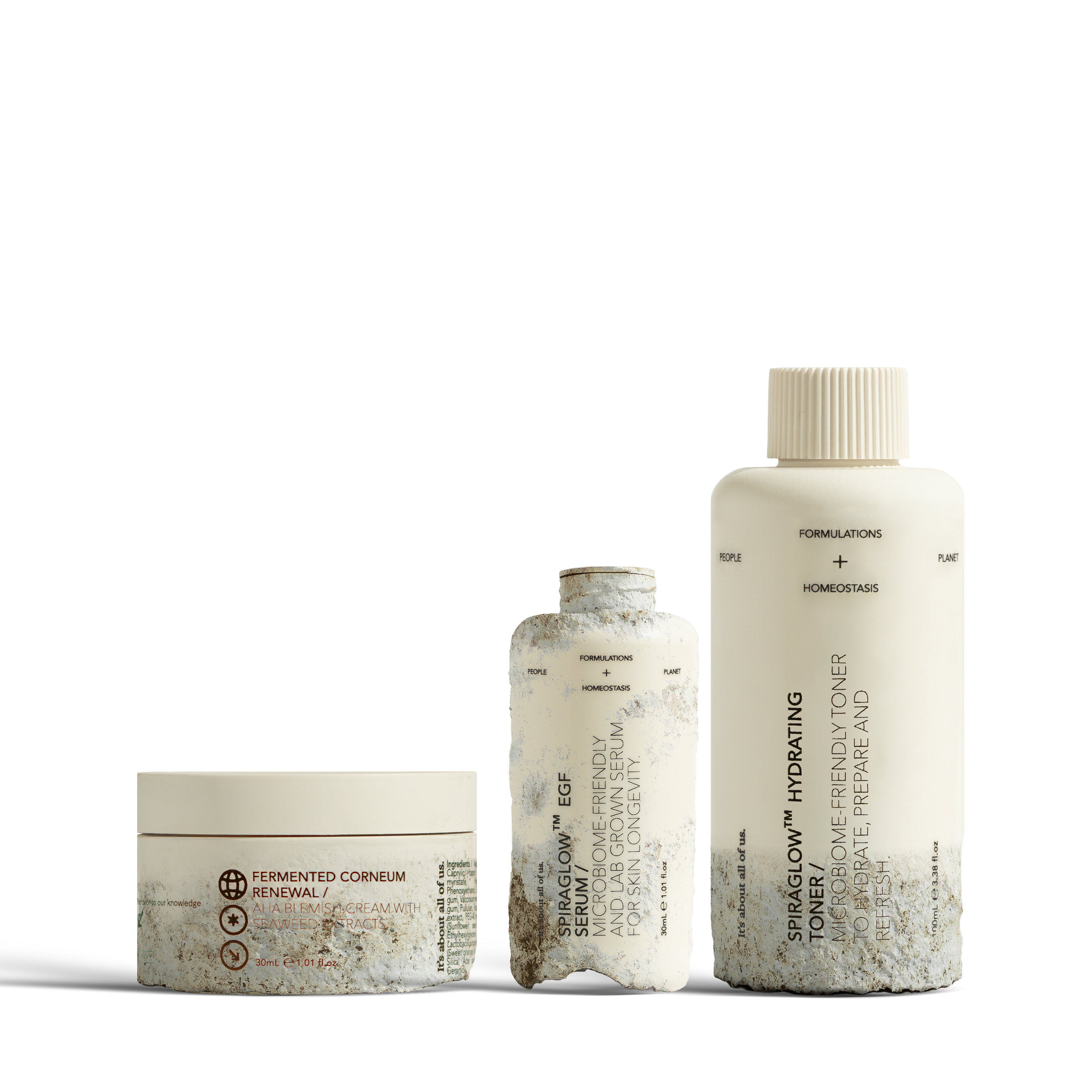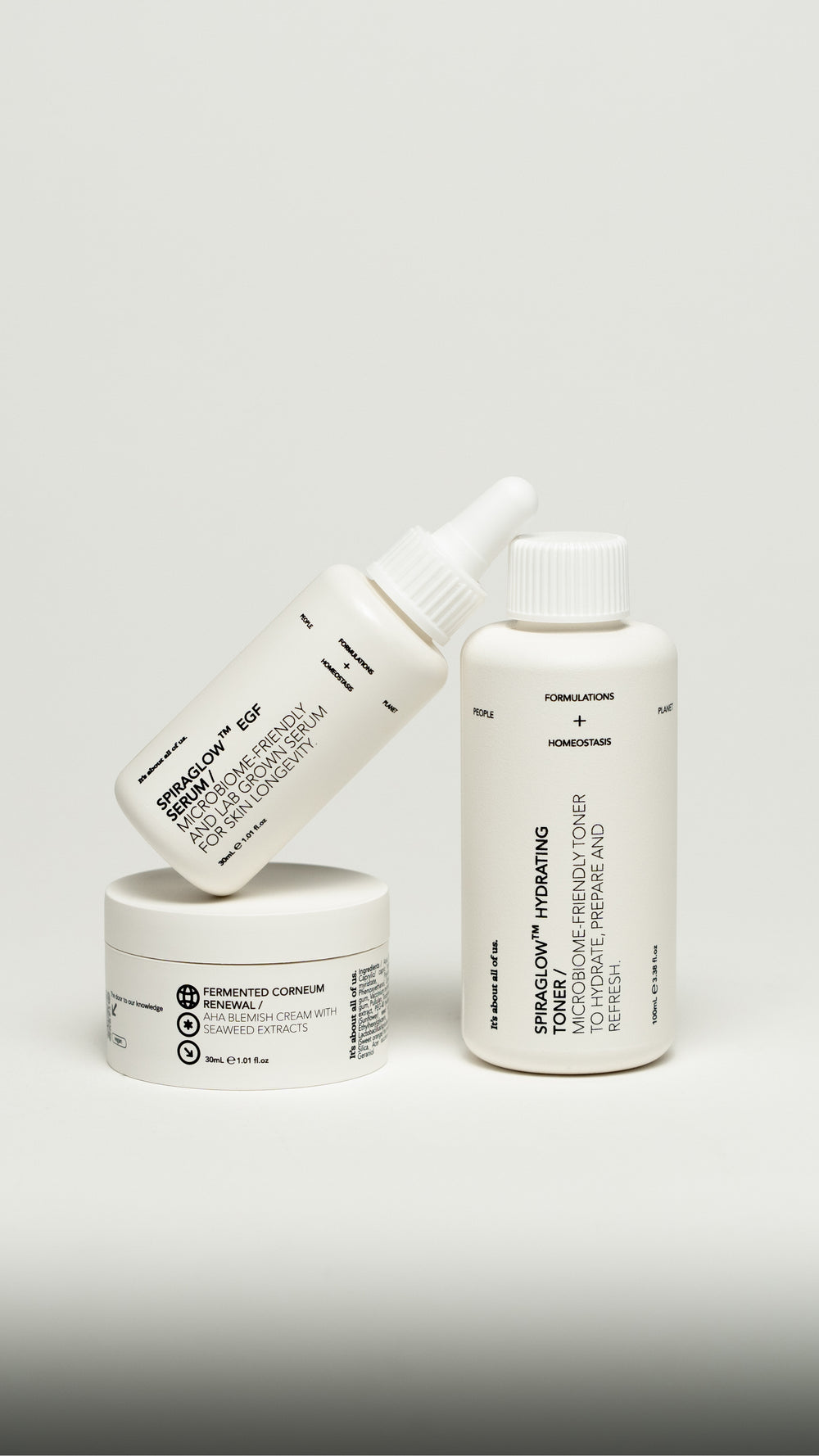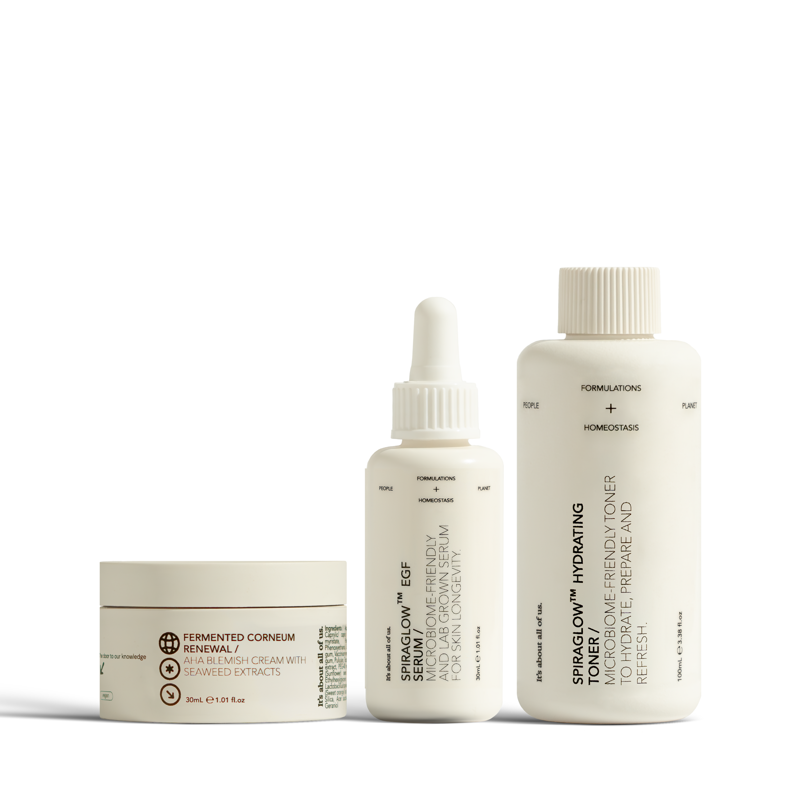 This set features three full-sized products that feature this antioxidant powerhouse: Spiraglow™ EGF Serum, Spiraglow™ Hydrating Toner and our newest skincare product, Fermented Corneum Renewal.