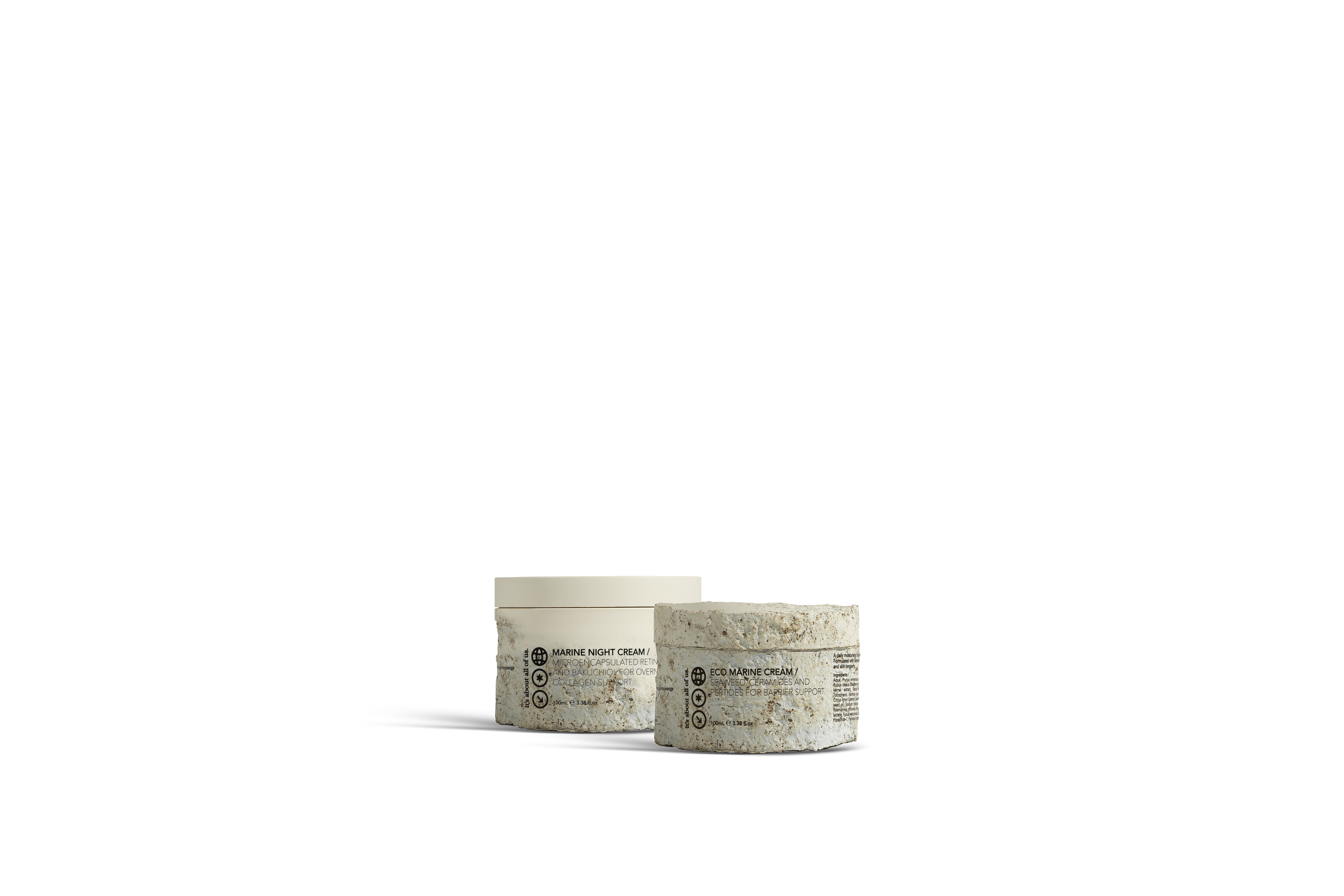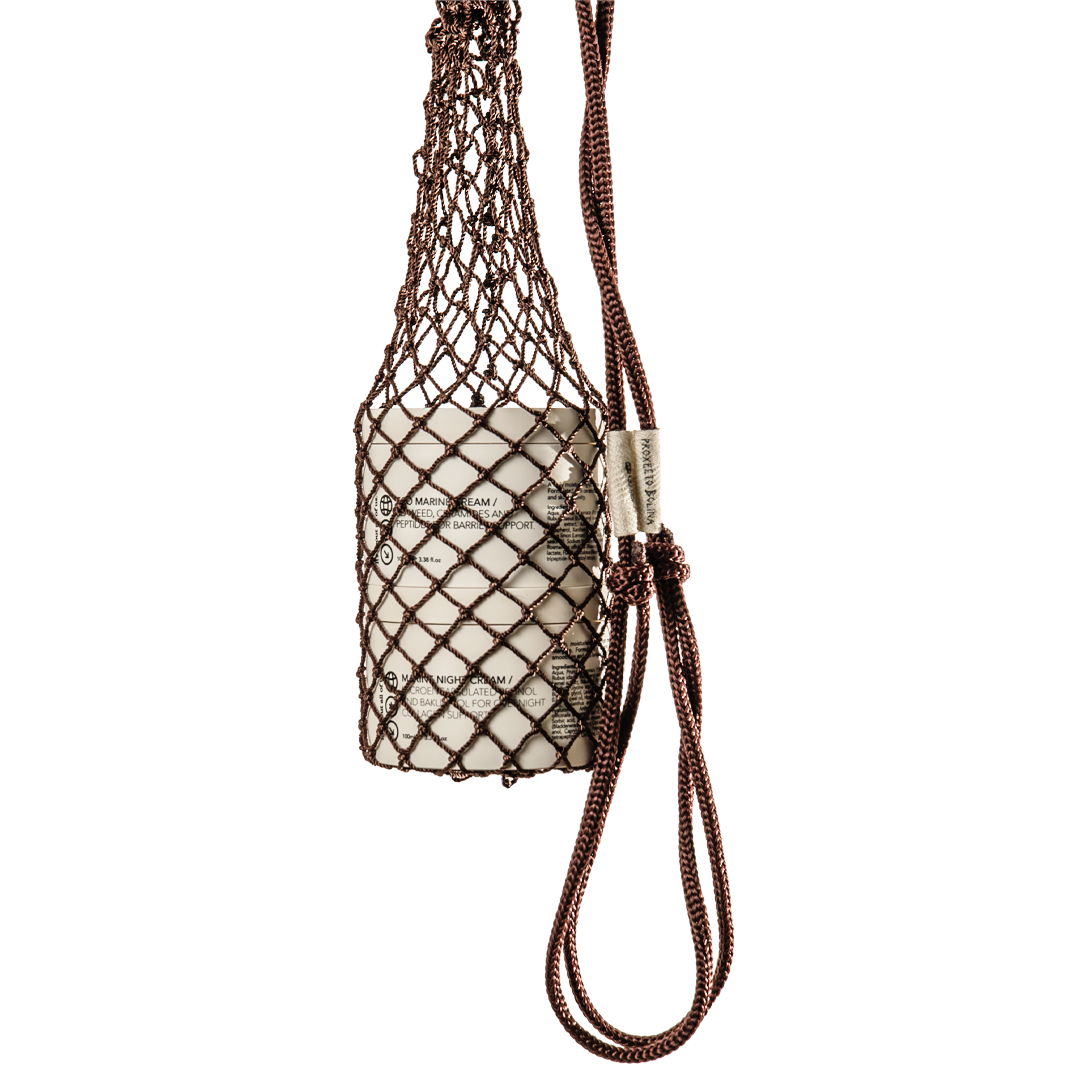 A skincare set featuring our 100mL Eco Marine Cream and Marine Night Cream. Offered for a limited time with the Proxecto Bolina Fishing Net Bag.